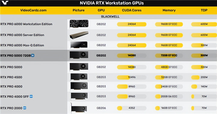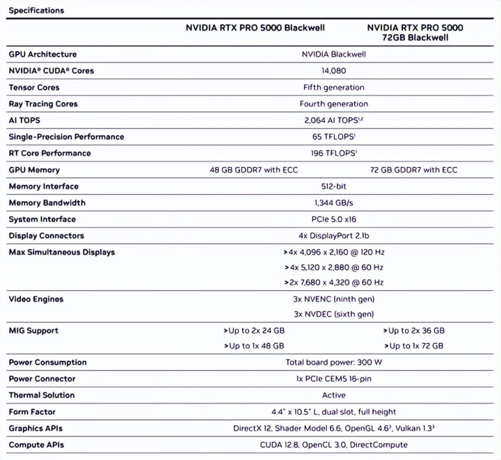 近日,NVIDIA悄然升级了次旗舰版本RTX PRO 5000,除了原有的48GB显存,又增加了72GB版本,扩大了一半。
