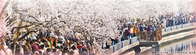 游客在玉渊潭公园踏青赏樱