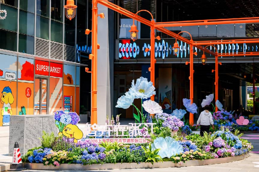 “不是我在看花,而是花园在‘感知’我”,这是本次张江分会场最具颠覆性的创新亮点。从街道艺术橱窗到空中花桥,从生态科技装置到人宠友好空间,这里的每一处景观都被赋予了“生命”。张江分会场以花为媒,将艺术、科技、生态与人文温情串联,让市民在移步换景间感受自然之美、科创之智、城市之韵。