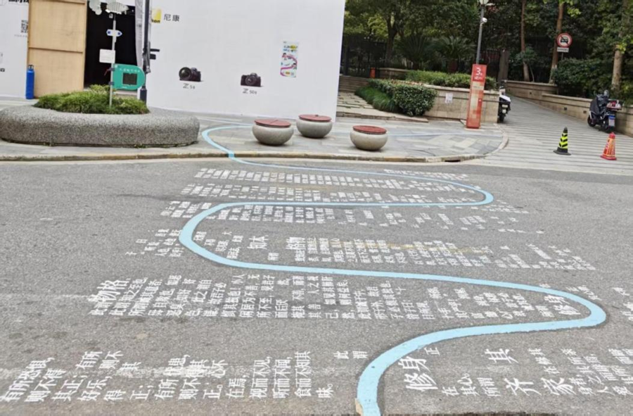 《大学》经典名句组成了最有文化的斑马线